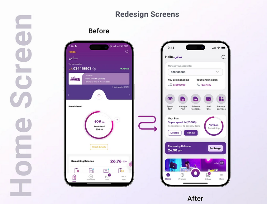 في المشروع ده حرصنا نصمم كافة واجهات البرنامج مرة أخرى، وفي كل واجهة جديدة بنختزل مساحات أو نوسعها حسب الحاجة، والضرورة القصوى هي أن التصميم الجديد يتناسب مع احتياجات العملاء الحاليين أكثر من القديم. ومعيار الحكم هنا ببساطة هو أنا، عشان أنا عميل في وي من أيام ما كان اسمها تيداتا.